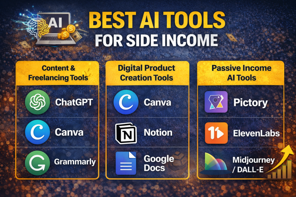 Starting an AI side income in the USA requires no upfront investment if you use tools like ChatGPT, Canva, and freelancing platforms. Beginners can earn through content writing, digital products, and automation services, often generating $500–$2000/month within 30–60 days by targeting high-demand online services.